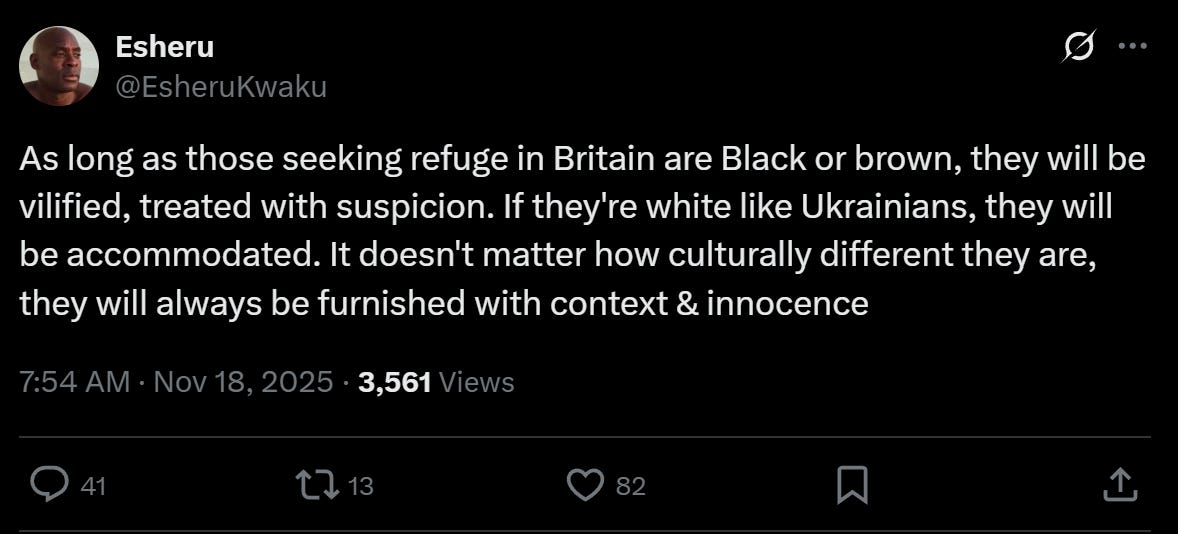 I think anyone can do a really quick analysis of which “refugees” from which ethnic backgrounds commit the most crimes. For example, Hong Kong refugees being non-white Europeans did not start sexually assaulting women in England within weeks of arriving. There were no campaign to kick them out. But the same cannot be said of the many black and brown so-called refugees from Islamic countries. The British public would have had a completely different view of the white European refugees like Ukrainians if they were coming here and in majority committing crimes while there wasn’t actually a war going on back home.