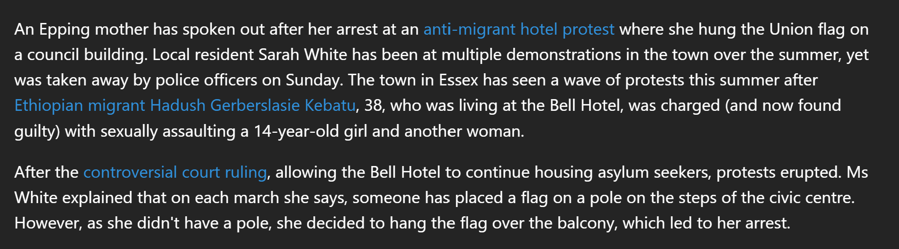 In this episode, I have a conversation with Sarah White and find out about her Pink Ladies protests in Epping, her arrest for flying the union jack, and her leaving Reform UK to join Advance UK.